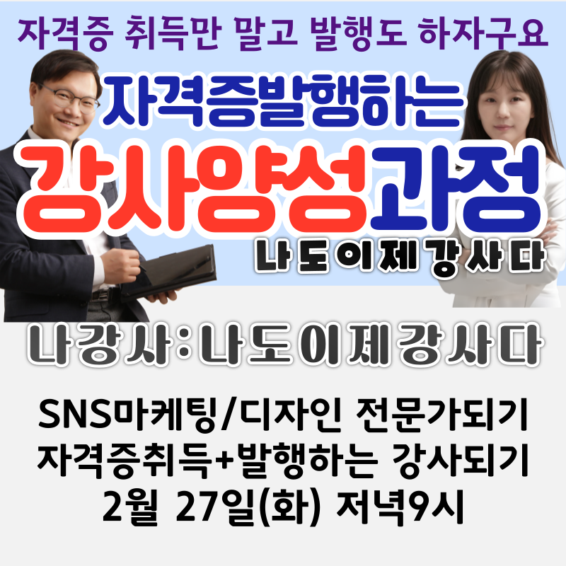 SNS마케팅관리사 자격증 강사양성 과정 무료특강 초대합니다