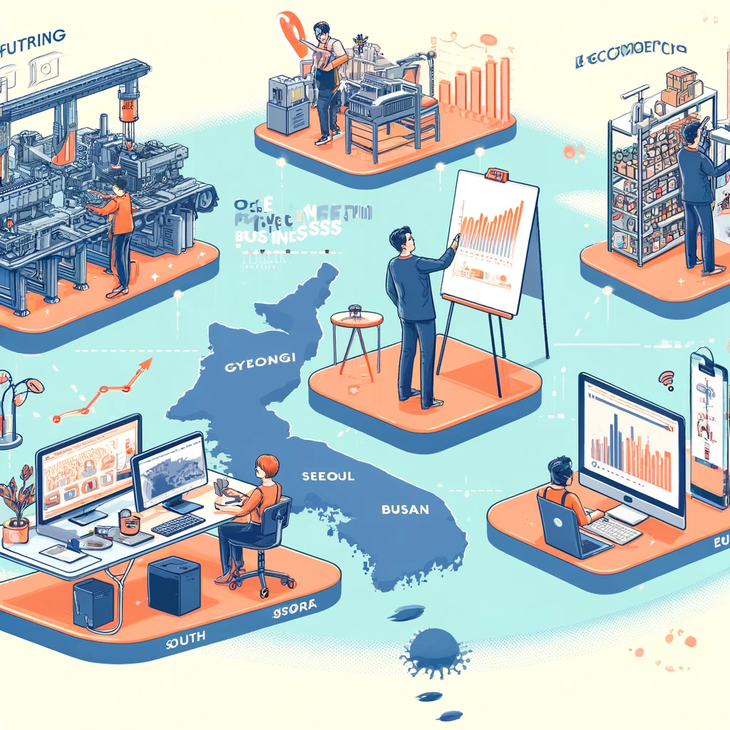 가장 활발하게 운영되는 업종은 제조업(26.2%), 전자상거래업(21.2%), 교육서비스업(16.7%) 순으로 나타났습니다. 지역별로는 경기도가 28.0%로 가장 높은 비중을 차지하고 있으며, 이어서 서울(24.0%), 부산(6.2%) 순입니다. 수도권과 비수도권의 비율은 각각 57.2%와 42.8%로 집계되었습니다.